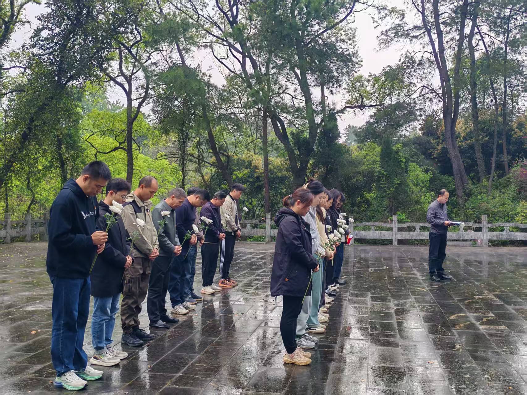 苍松翠柏环抱,纪念碑巍峨矗立。全体人员整齐列队、神情肃穆,在庄严的烈士纪念碑前肃立默哀,向为民族解放事业壮烈牺牲的苏蔓、张海萍、罗文坤三位烈士致以最崇高的敬意与最深切的哀思。随后,大家缓步上前,依次敬献鲜花,一朵朵洁白的菊花寄托着对英烈的无限追思,表达着继承先烈遗志、矢志接续奋斗的坚定信念。