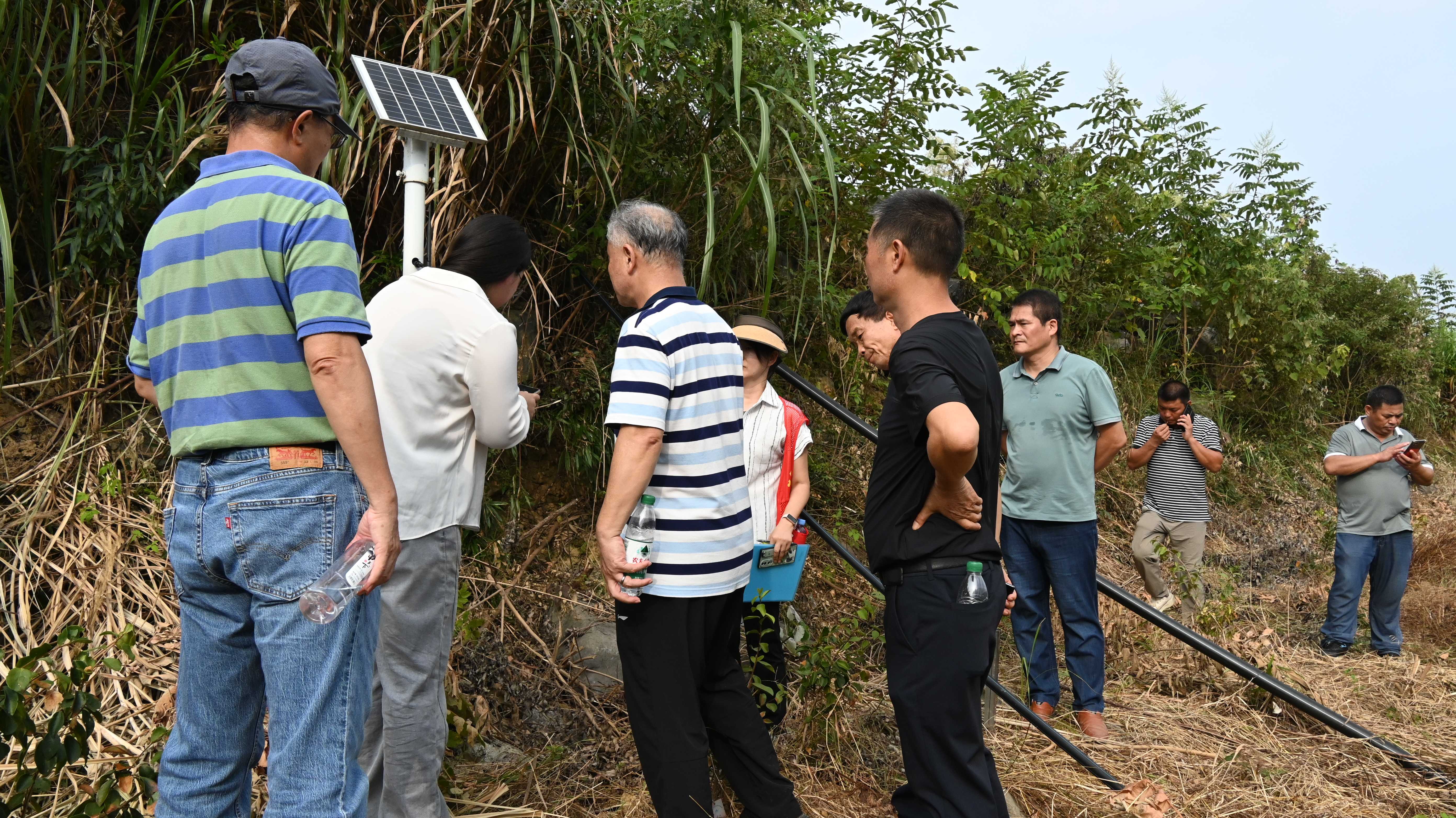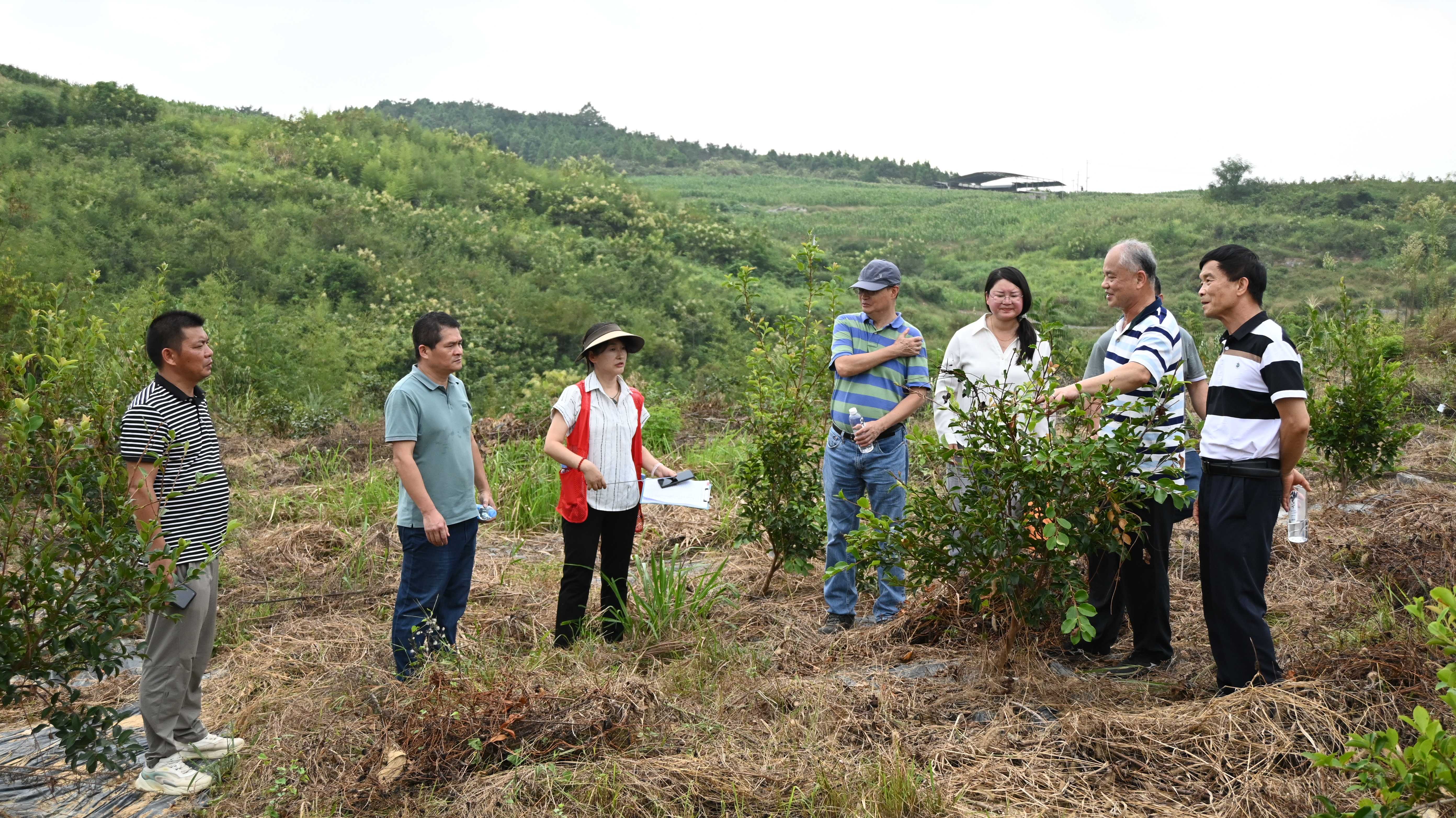 下午,参训人员统一前往位于全州文桥江头村的项目基地,开展现场实践指导。兰老师与技术团队围绕基地内的智能水肥一体化设备,进行手把手教学:从设备参数调试、灌溉施肥方案设定,到日常故障排查,逐一演示操作流程;同时结合基地油茶生长状况,解答种植户提出的“不同树龄水肥用量差异”“极端天气下系统如何调整”等实际问题。李教授则针对基地内部分油茶林的生长情况,现场分析树形修剪、病虫害绿色防控等管理要点,将上午的理论知识转化为可落地的实践技巧,帮助参训人员真正学懂、弄通、会用。